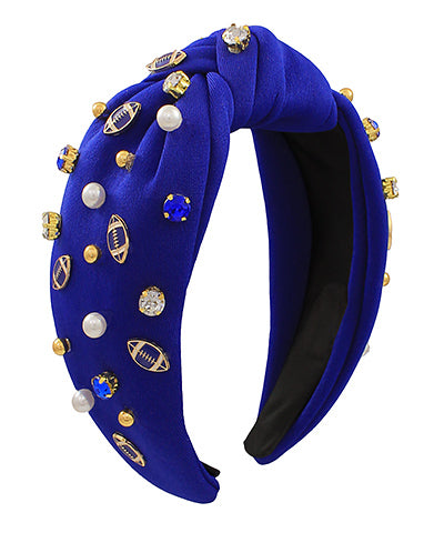 Blue and White Bling Football Headband