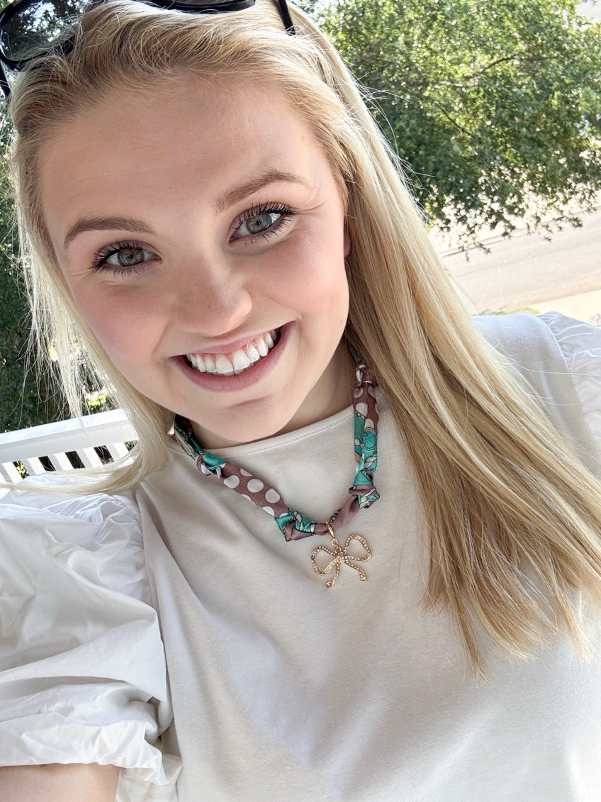 Bow Teal Scarf Necklace