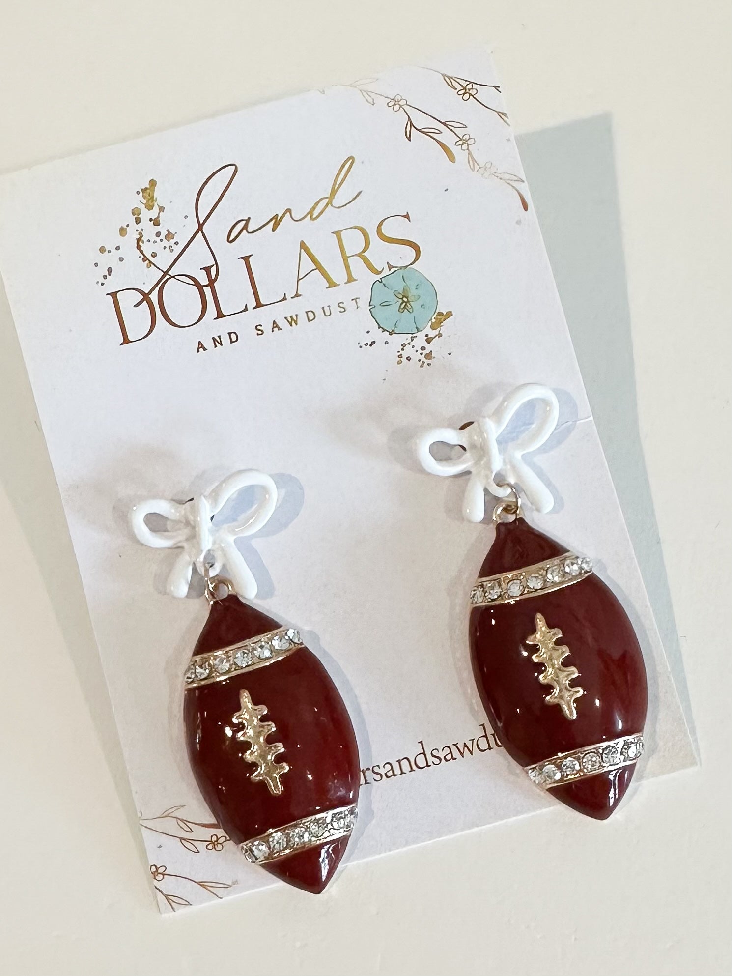 Burgundy/White Bow Football Earring Dangle