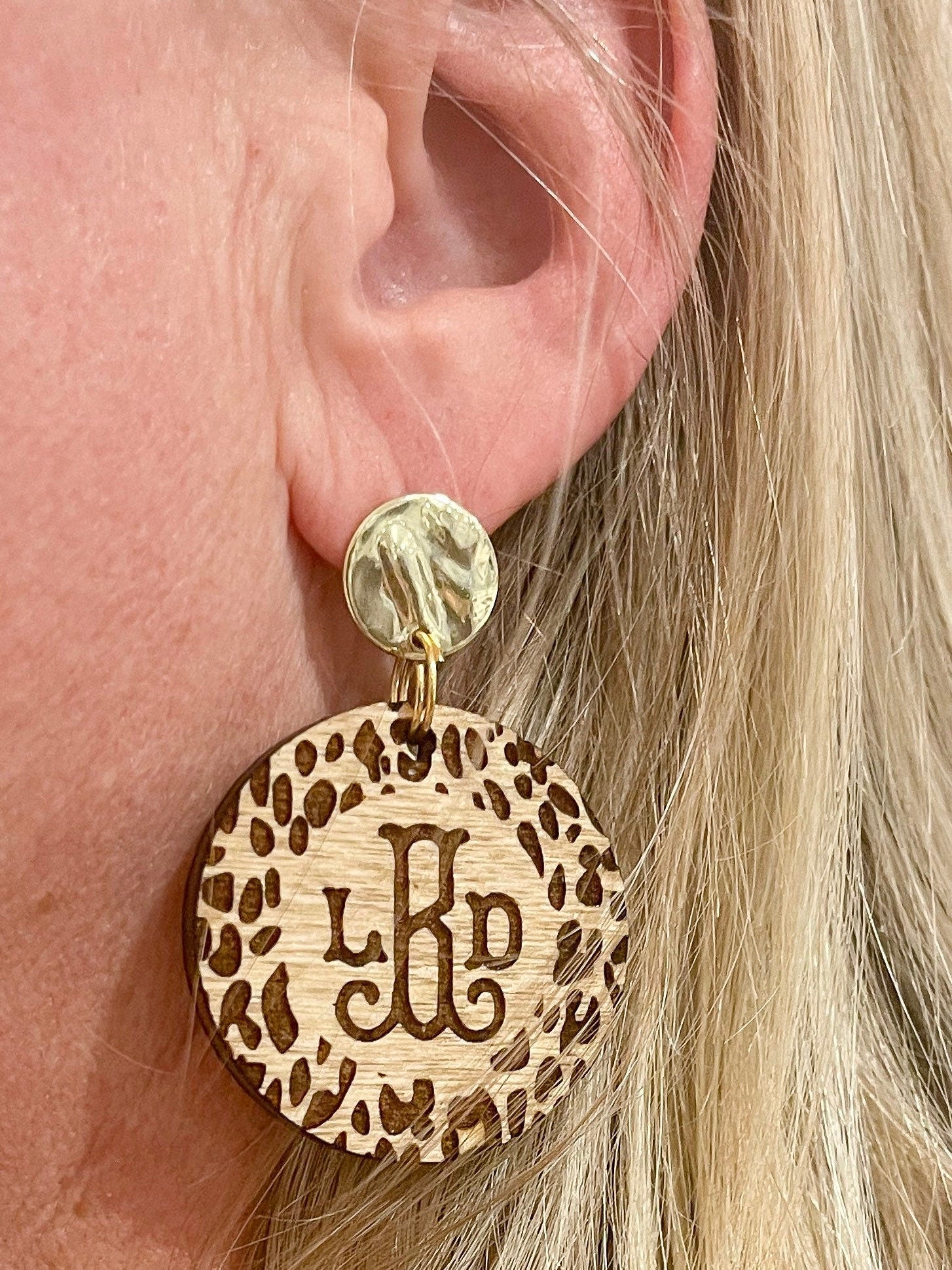 Elevate your accessory game with these Custom Leopard Monogram Earrings—a fierce blend of Southern charm and bold personality. Each pair is laser-cut and engraved from high-quality natural wood, featuring a circle design with a leopard print border and personalized monogram at the center.