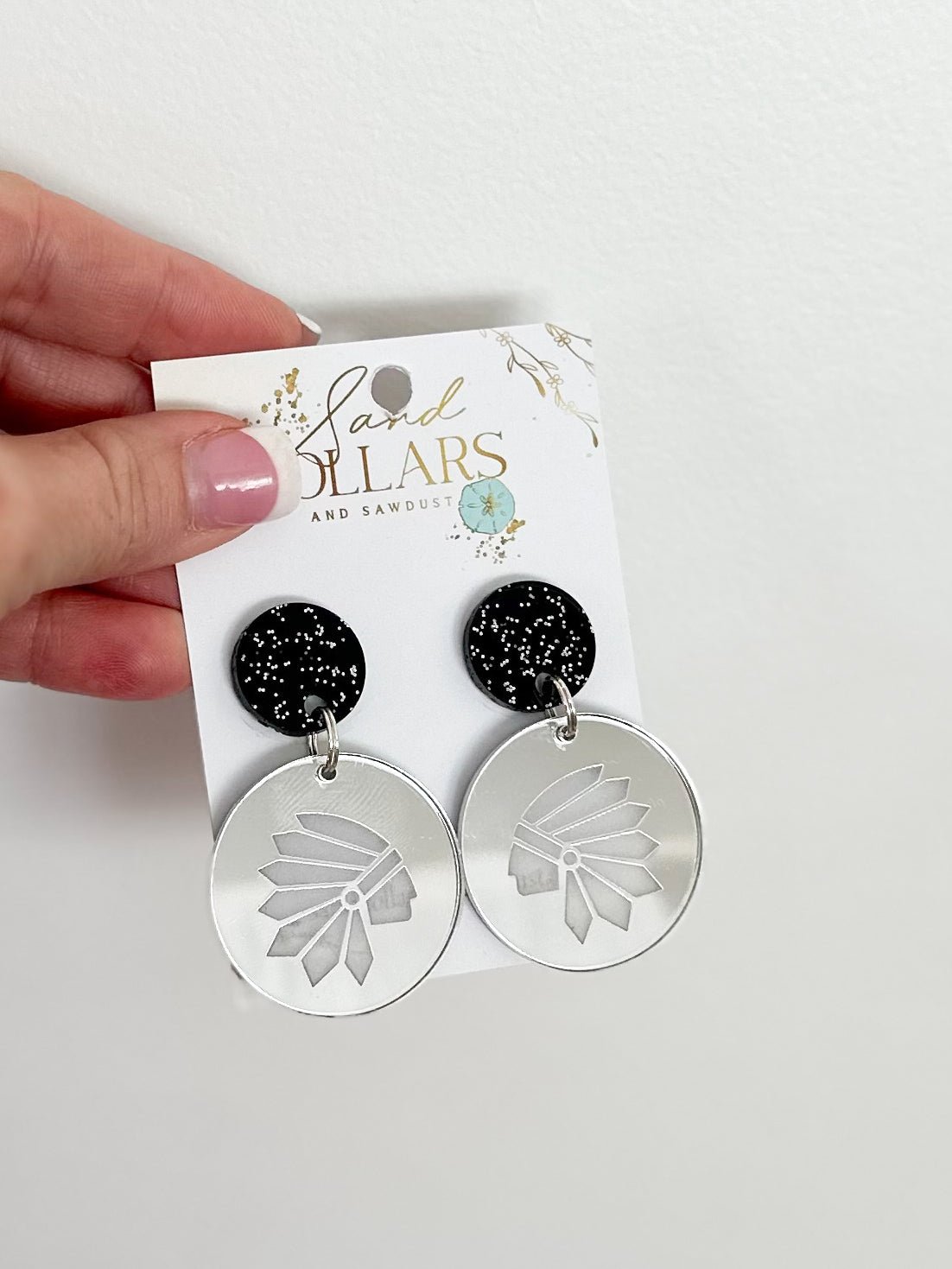 NMB Chief Head Circle Earrings with Black and Silver With Seed Bead Stud topper