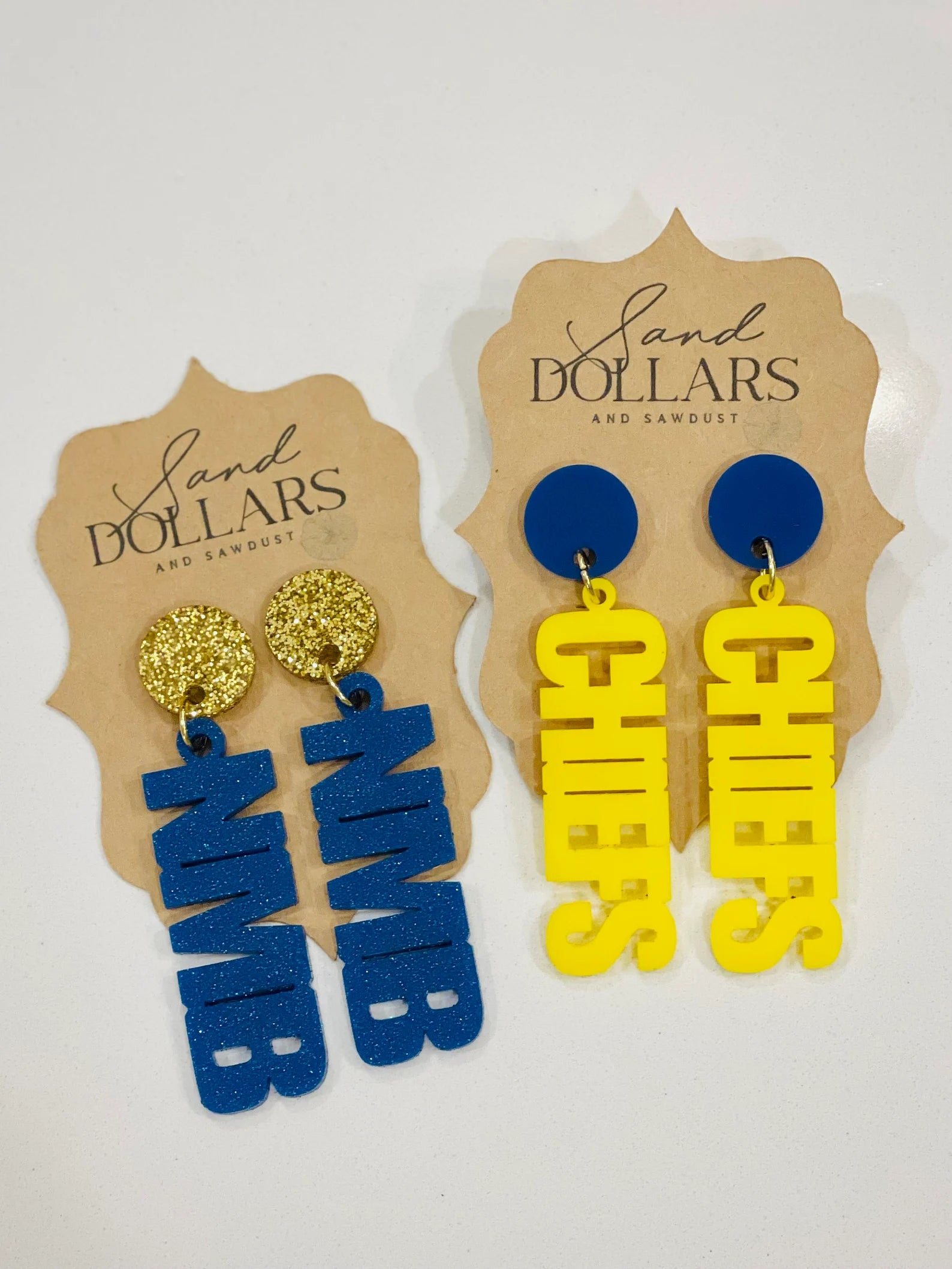 Show your team spirit with these Personalized Gameday Earrings! Crafted in-house with precision laser cutting on vibrant acrylic, each pair is uniquely customized just for you. Perfect for cheering on your favorite team in style, these playful earrings add a fun, personal touch to any game day outfit.