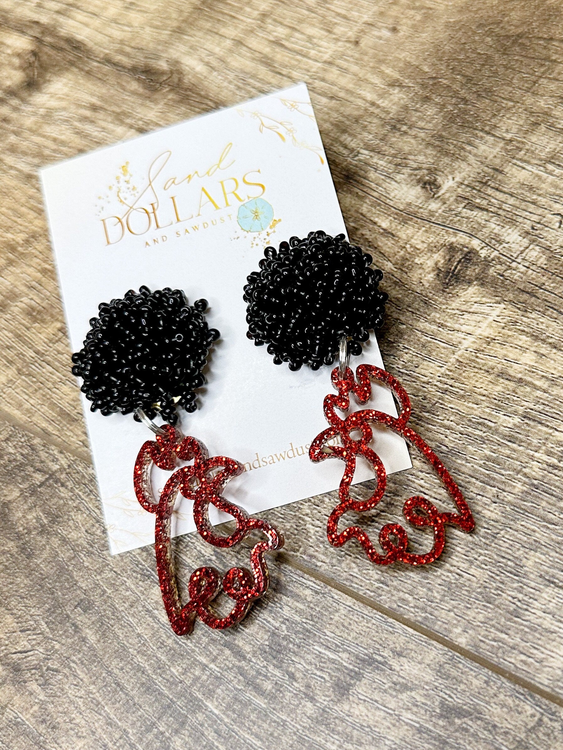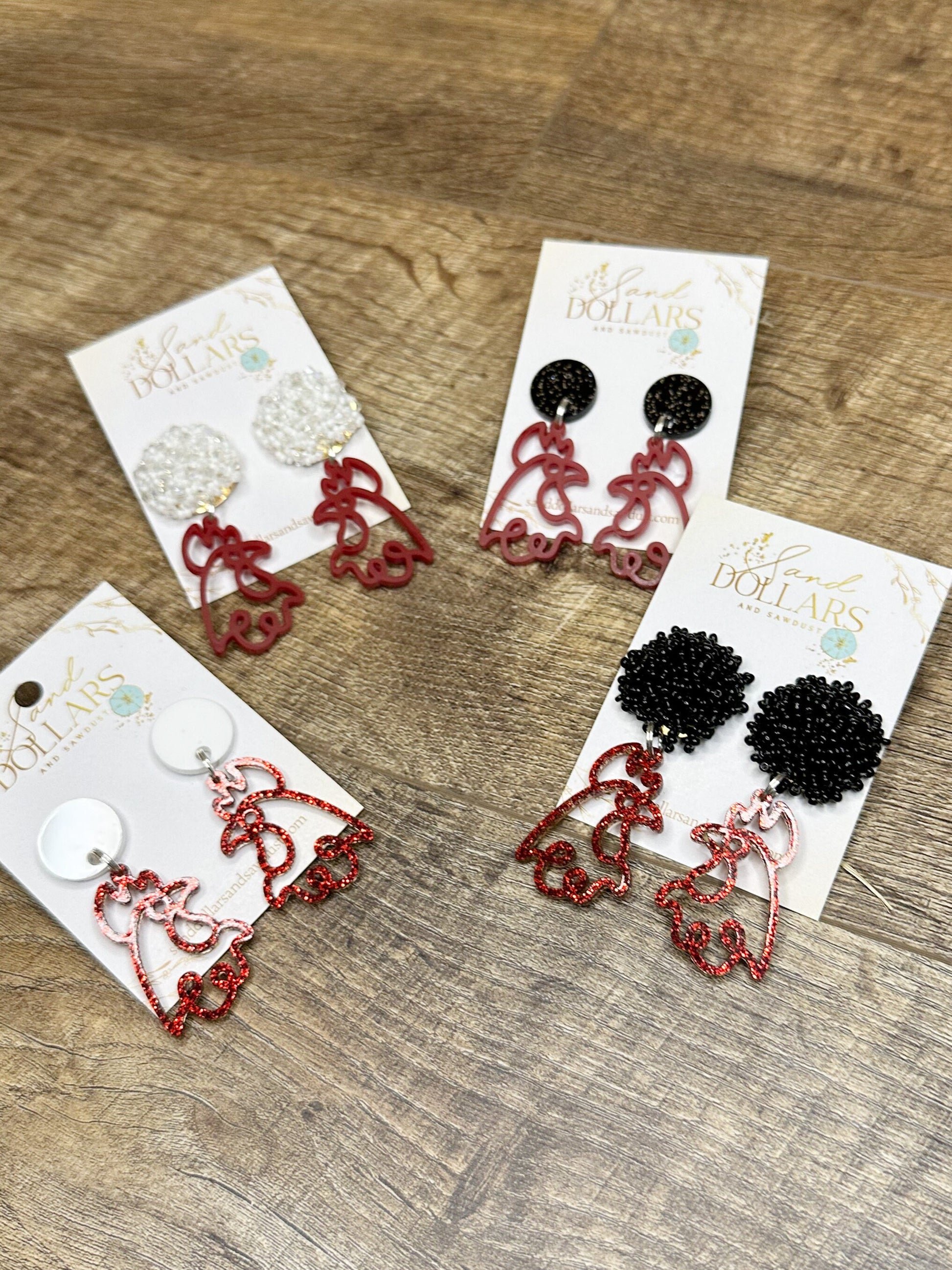 Pair them with a stadium-approved clear bag, custom tumbler, and a “Go Cocks” tee for the ultimate fan look. These earrings are also available in teal for Coastal Carolina or other school colors upon request!
