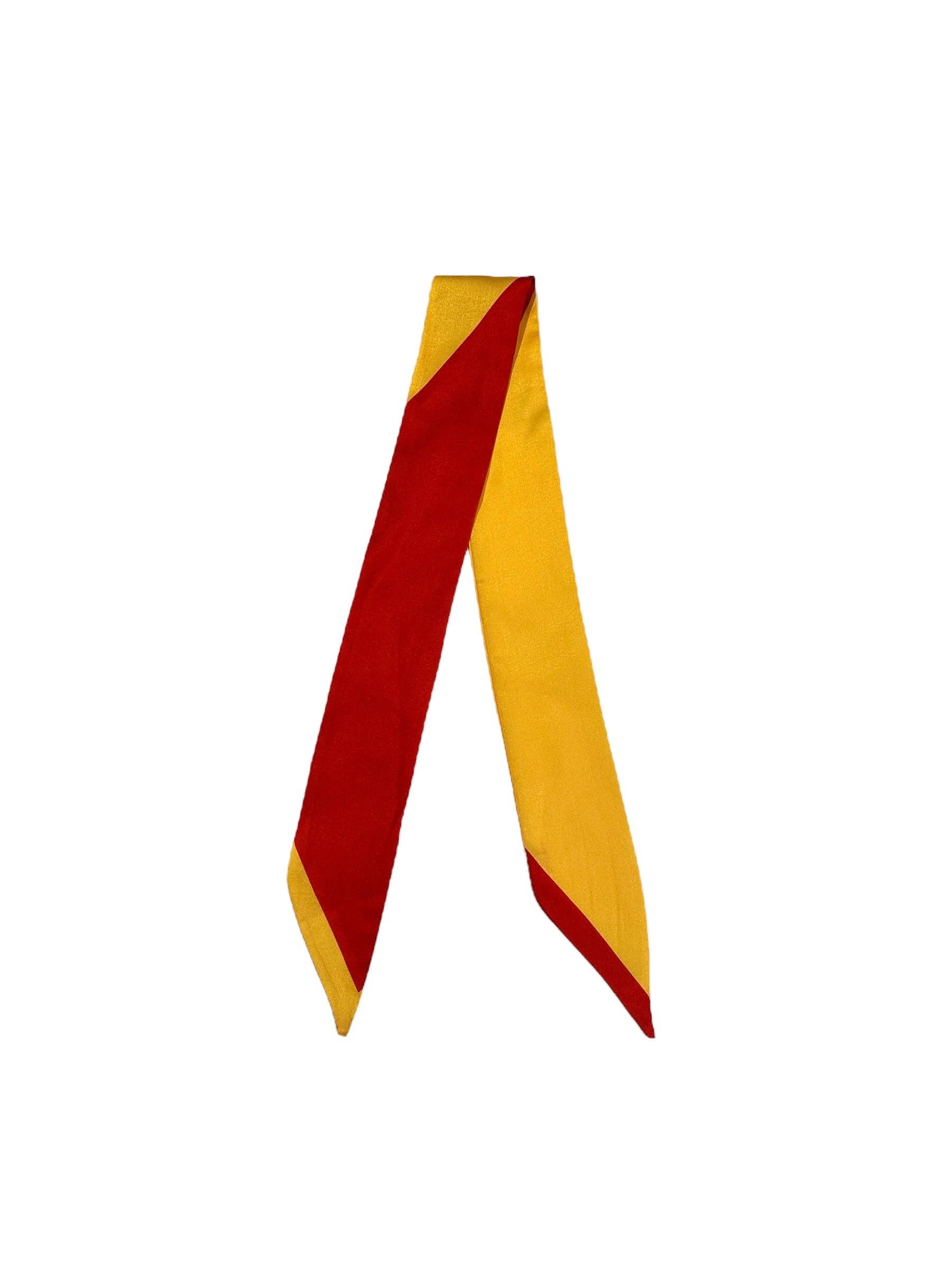 Meet the Twilly Scarf in vibrant RED/GOLD, your new favorite accessory. This scarf adds a touch of elegance to any outfit and can be styled in numerous ways to suit your personal flair. The Twilly Scarf is a reflection of strong, wild, and imperfectly perfect women. Affordable style without compromising on quality. Elevate your look with this stunning scarf today.