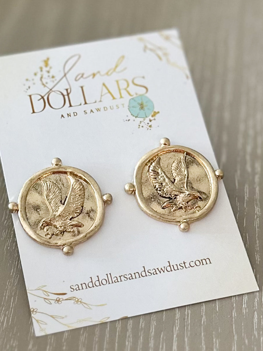 Hammered & Ball Studded Eagle Earrings