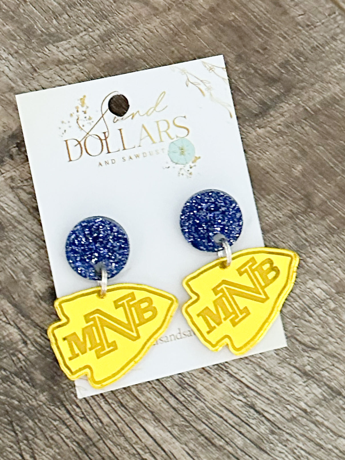 NMB Arrowhead Earrings with Blue Glitter Stud